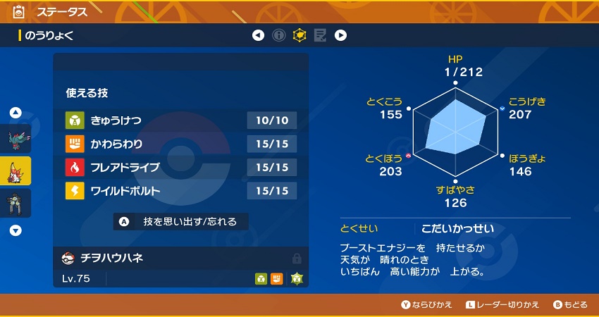 ジャローダは耐久がある方だしギガドレインもあるのでまず問題ないとは思いますが、にほんばれ+フレアドライブを使ってくるチヲハウハネがやや苦手。