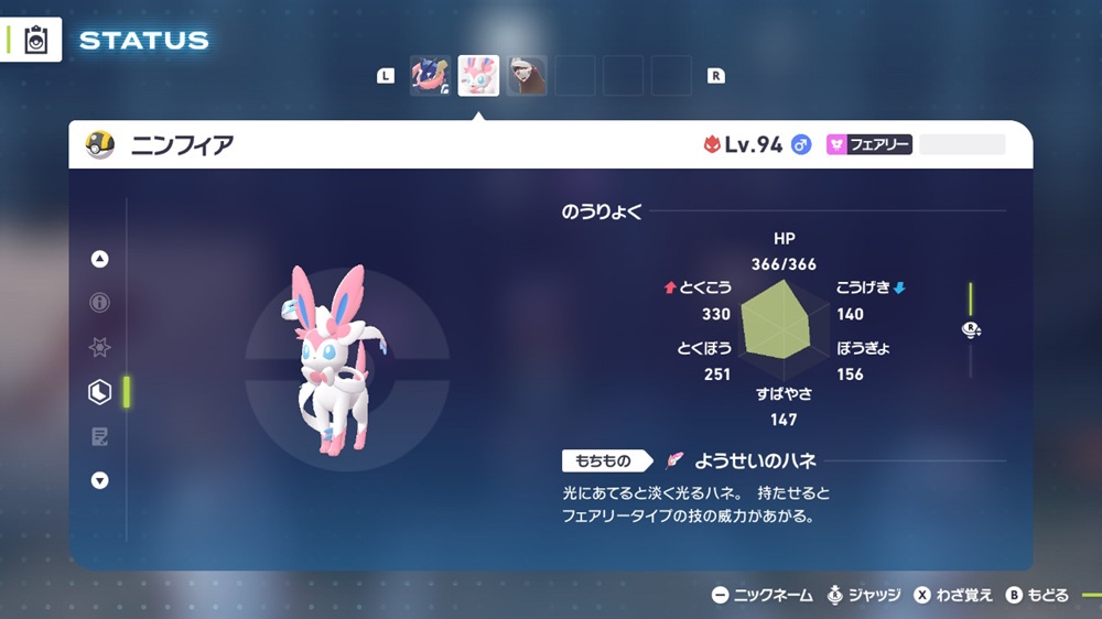 • 技構成:ムーンフォース / ドレインキッス / めいそう / まもる