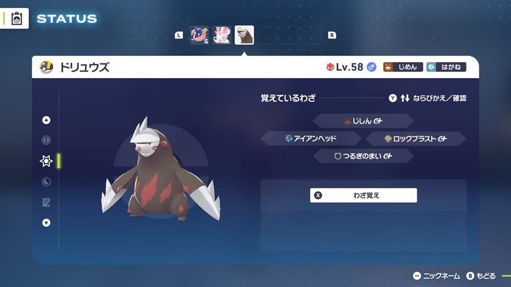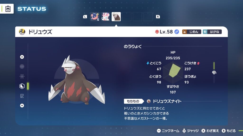 • 持ち物:ドリュウズナイト