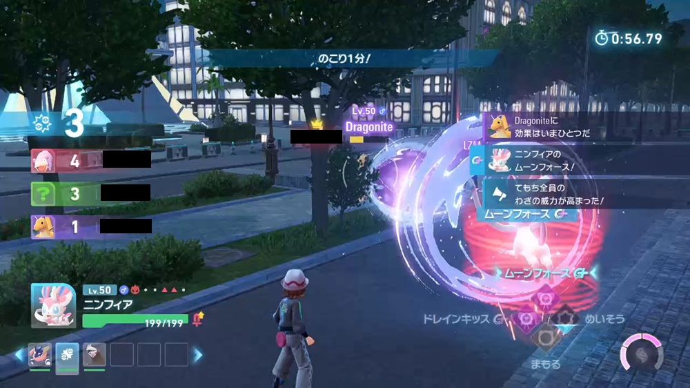 近距離での殴り合いは発動タイミングの関係で不利になりやすいため、危険な場面では無理せず後ろのドリュウズやニンフィアに任せるのが吉です。